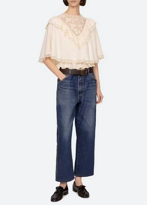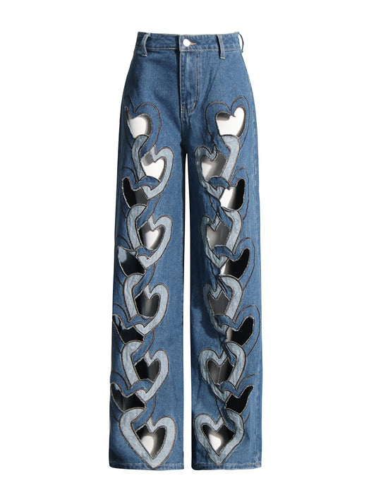 Hanne Hollow Weave Wide Leg Jeans In Pink