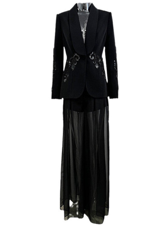 Luxe Lace Contrast Blazer Suit
