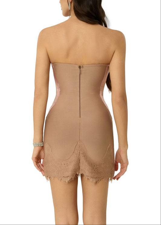 Domna Spaghetti Corset Lace Mini Dress In Blush