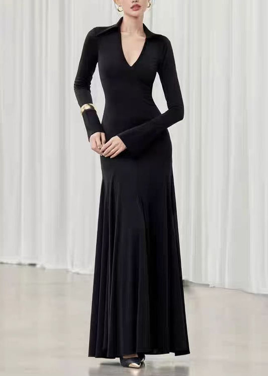 Elvy Bell Sleeve Plunge Maxi Dress