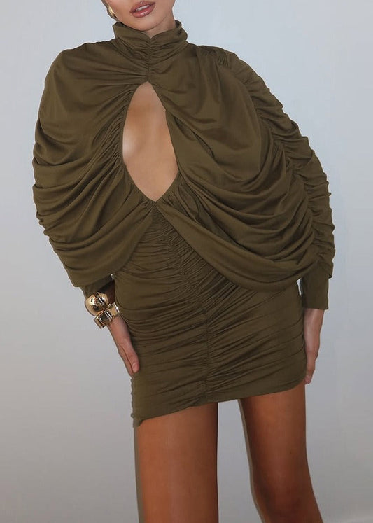 Anavrin Asymmetric Wavy Long Sleeve Mini Dress In Black