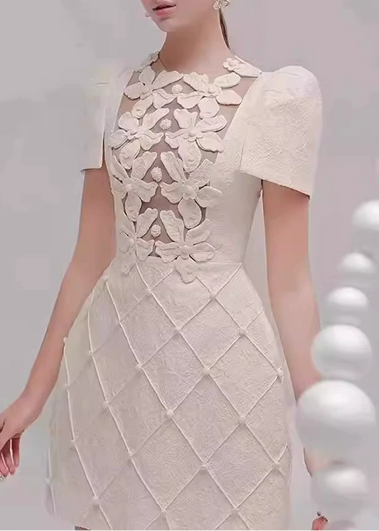 Daiki Jewel-Embellished Trim Mini Dress In White