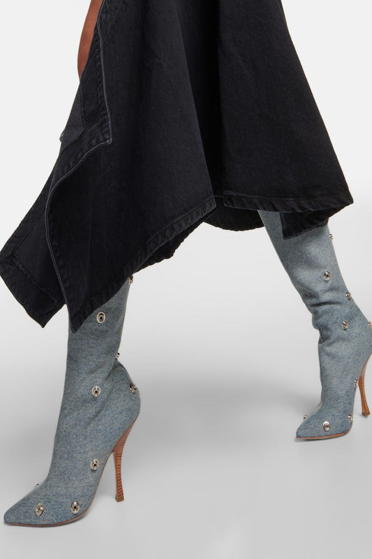 Ares Metal Buttons Denim Boots