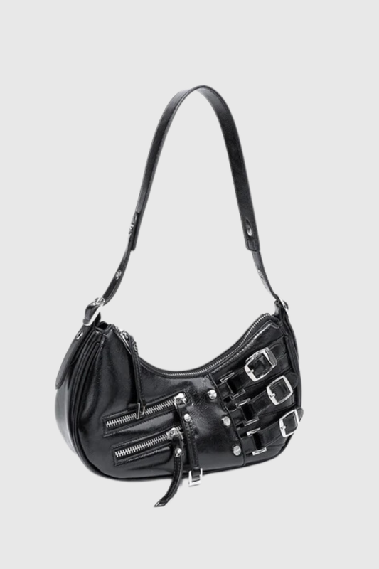Rosina Zip Faux Leather Bag In Black