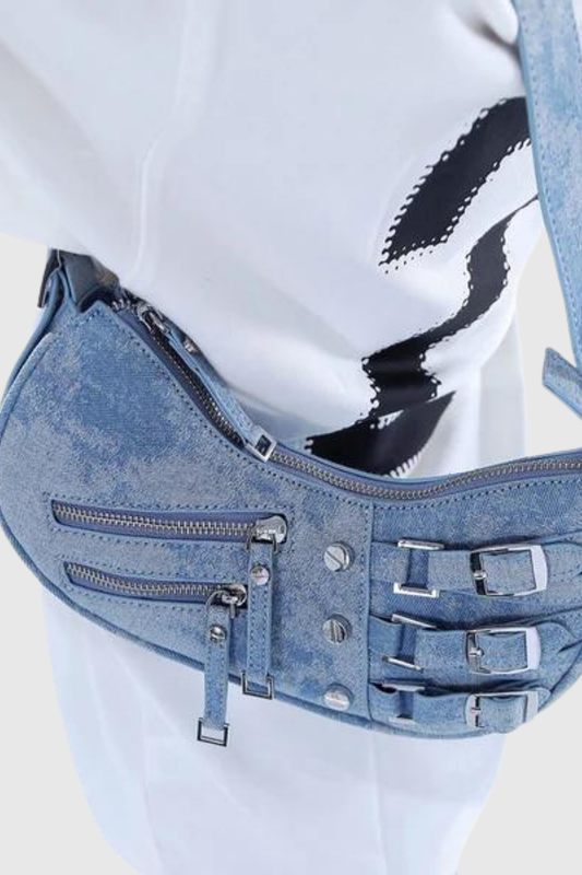 Rosina Zip Denim Bag In Blue