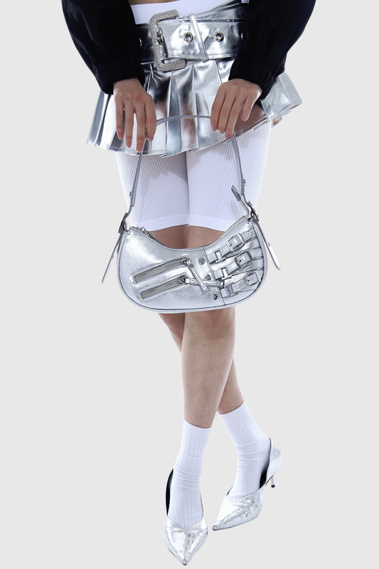 Rosina Zip Faux Leather Bag In Silver