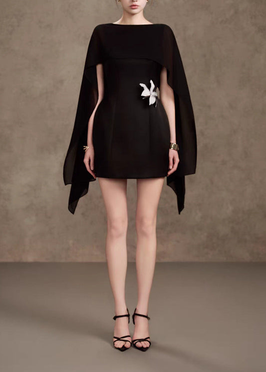 Anavrin Asymmetric Wavy Long Sleeve Mini Dress In Black