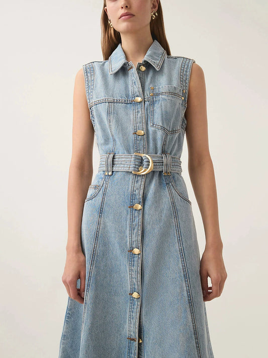 Meadow Multicolor Spaghetti Mini Denim Dress