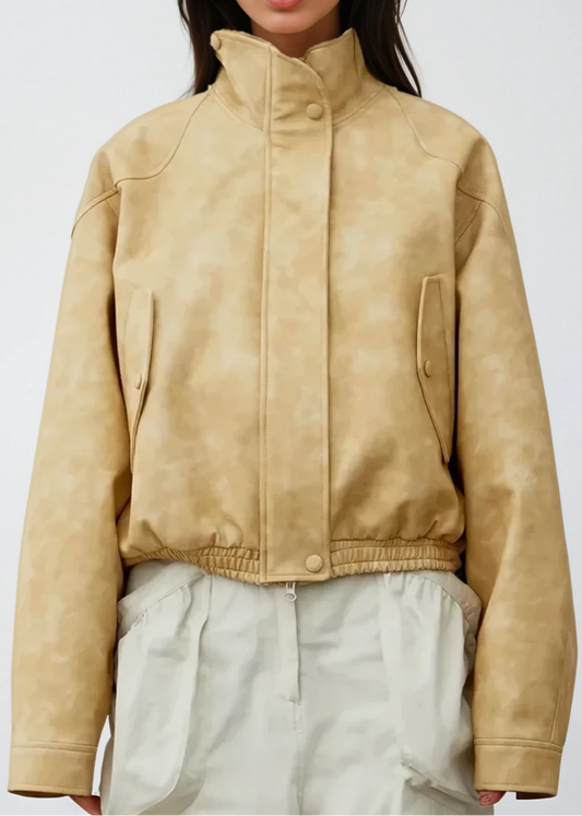Antonio Stand Collar Leather Jacket In Yellow