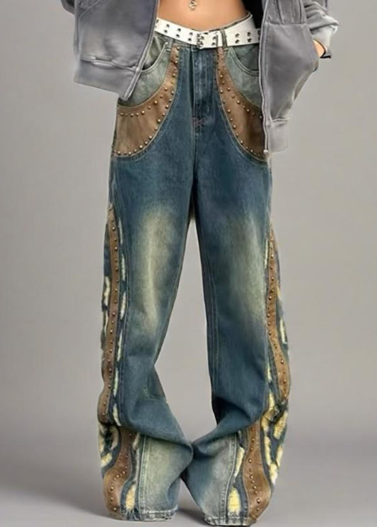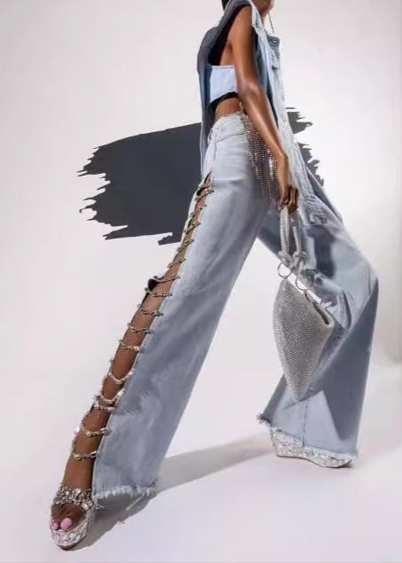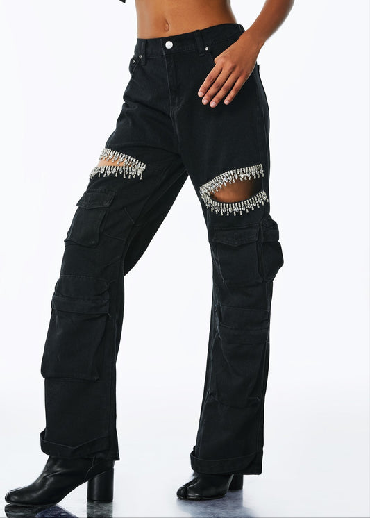 Abcde Diamond Cutout Cargo Jeans In Blue