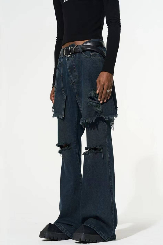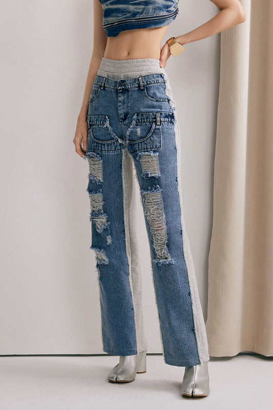 Pietro Hollow Torn Fringe Patchwork Jeans