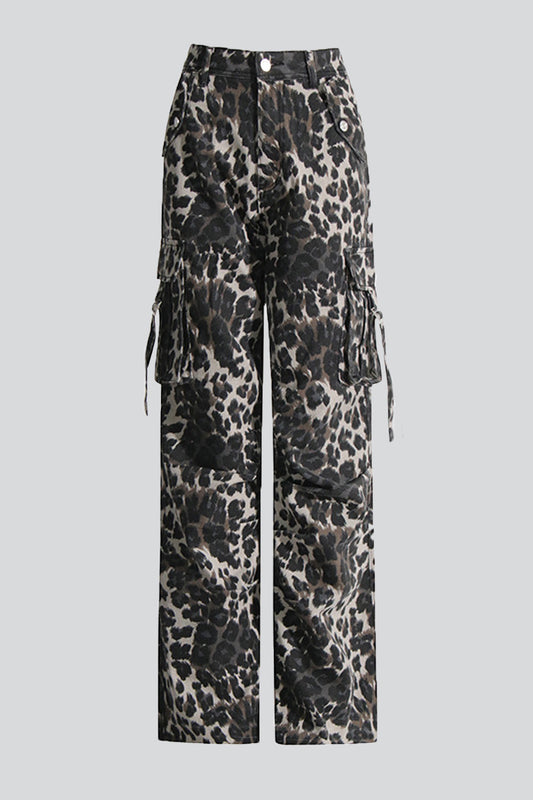 Beckham Leopard Printed Cargo Jeans