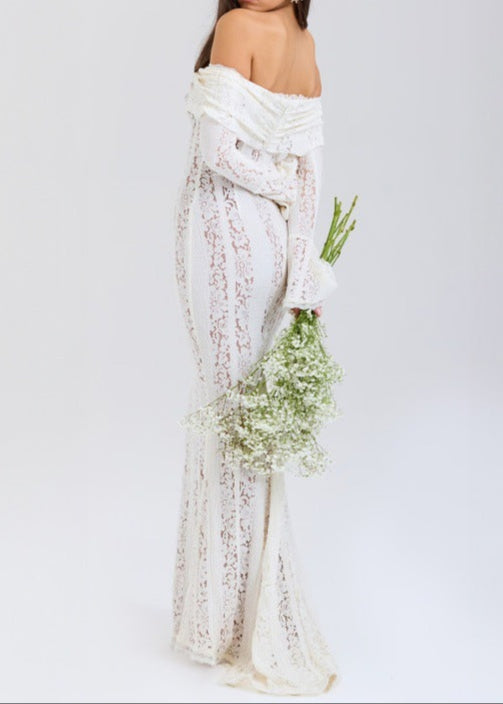 Adsila Lace Off Shoulder Cutout Maxi Dress
