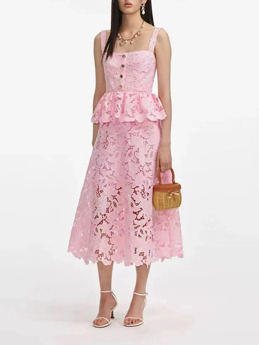 Yoko Spaghetti Lace Maxi Dress