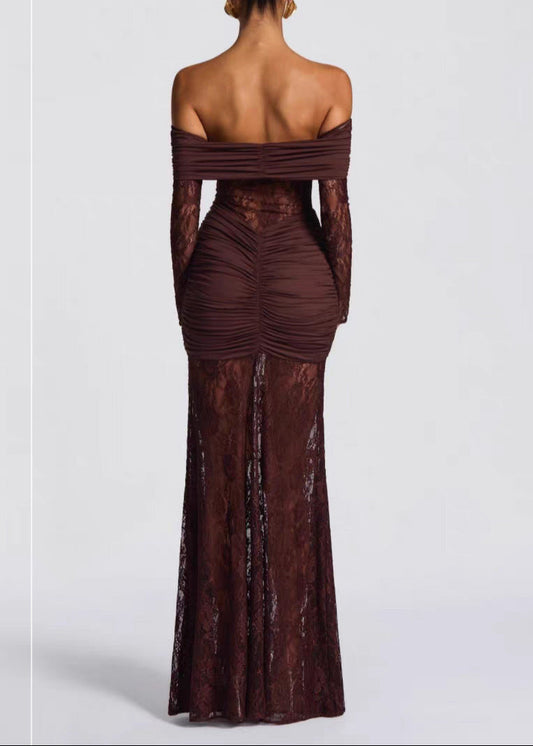 Sievia Strapless Ruch Lace Maxi Dress