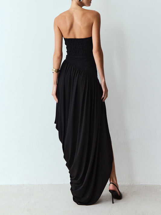 Deniz Strapless Asymmetric Draped Maxi Dress In Black