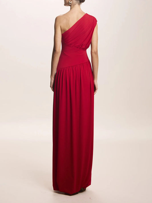 Drupada One Shoulder Ruch Maxi Dress In Red