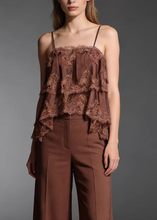 Elric Spaghetti Ruffle Lace Top