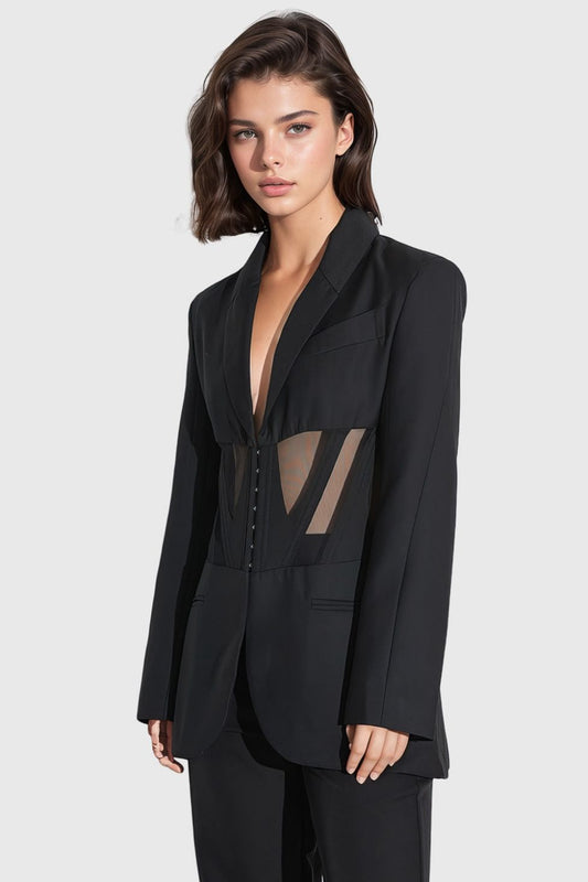 Riggs Paneled Mesh Lapel Blazer In Black