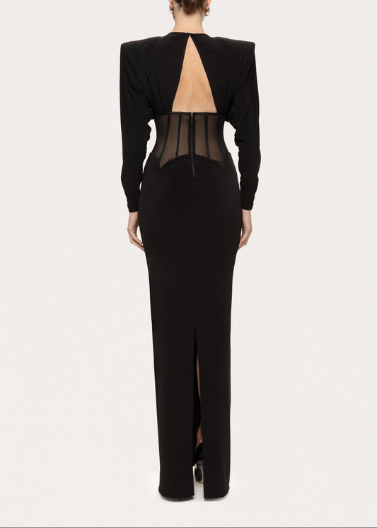 Decima One Shoulder Corset Mesh Maxi Dress In Red