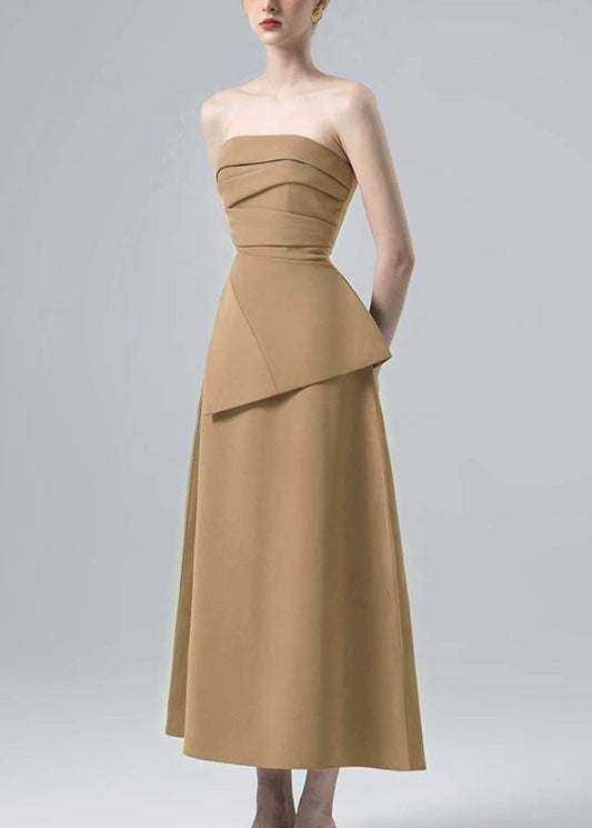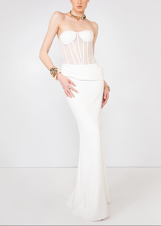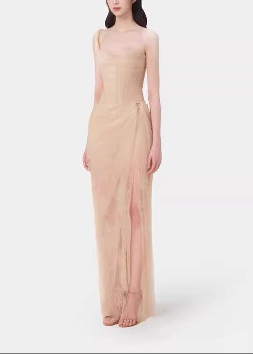 Decima One Shoulder Corset Mesh Maxi Dress In Apricot