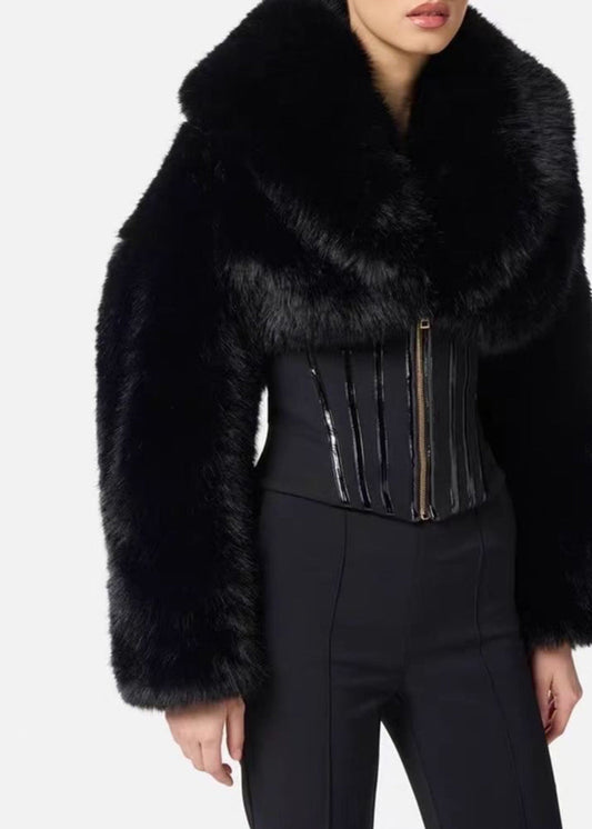 Davinia Lapel Corset Faux Fur Jacket