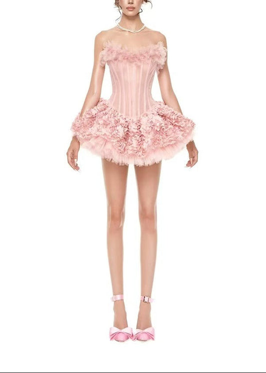 Dazbog Corset Flower Puffy Mini Dress In Pink