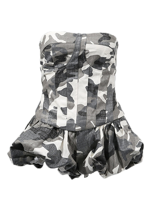 Baylor Camouflage Print Corset Lace Up Skirt Set