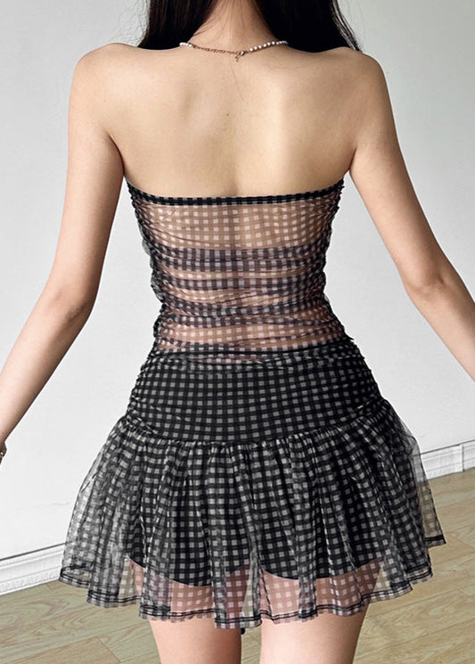 Beda Mesh Strapless Grid Ruffle Skirt Set