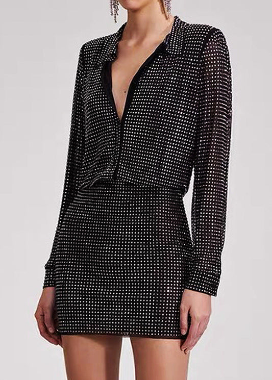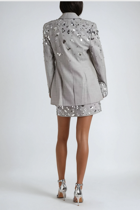 Adoeete Rhinestone Flower Strapless Skirt Set