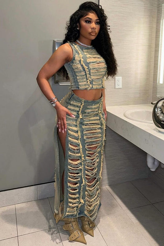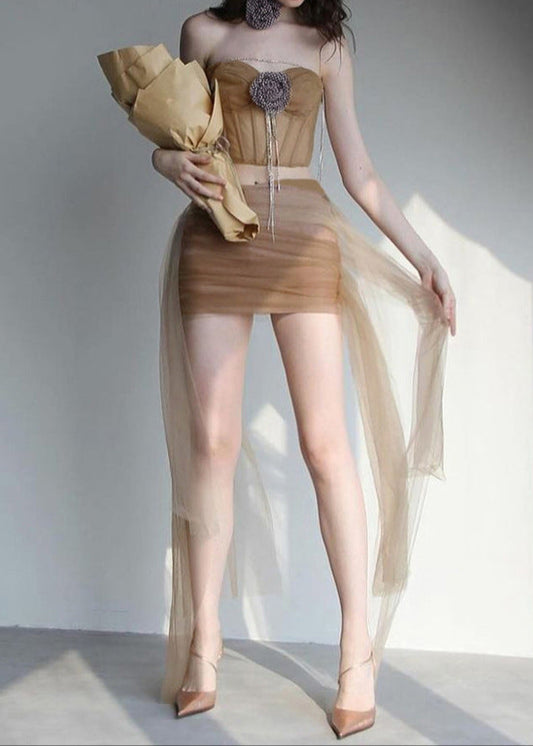 Adoeete Rhinestone Flower Strapless Skirt Set