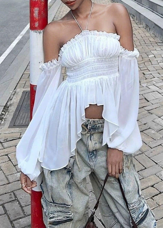 Berta Mesh Ruch Asymmetric Ruffle Top