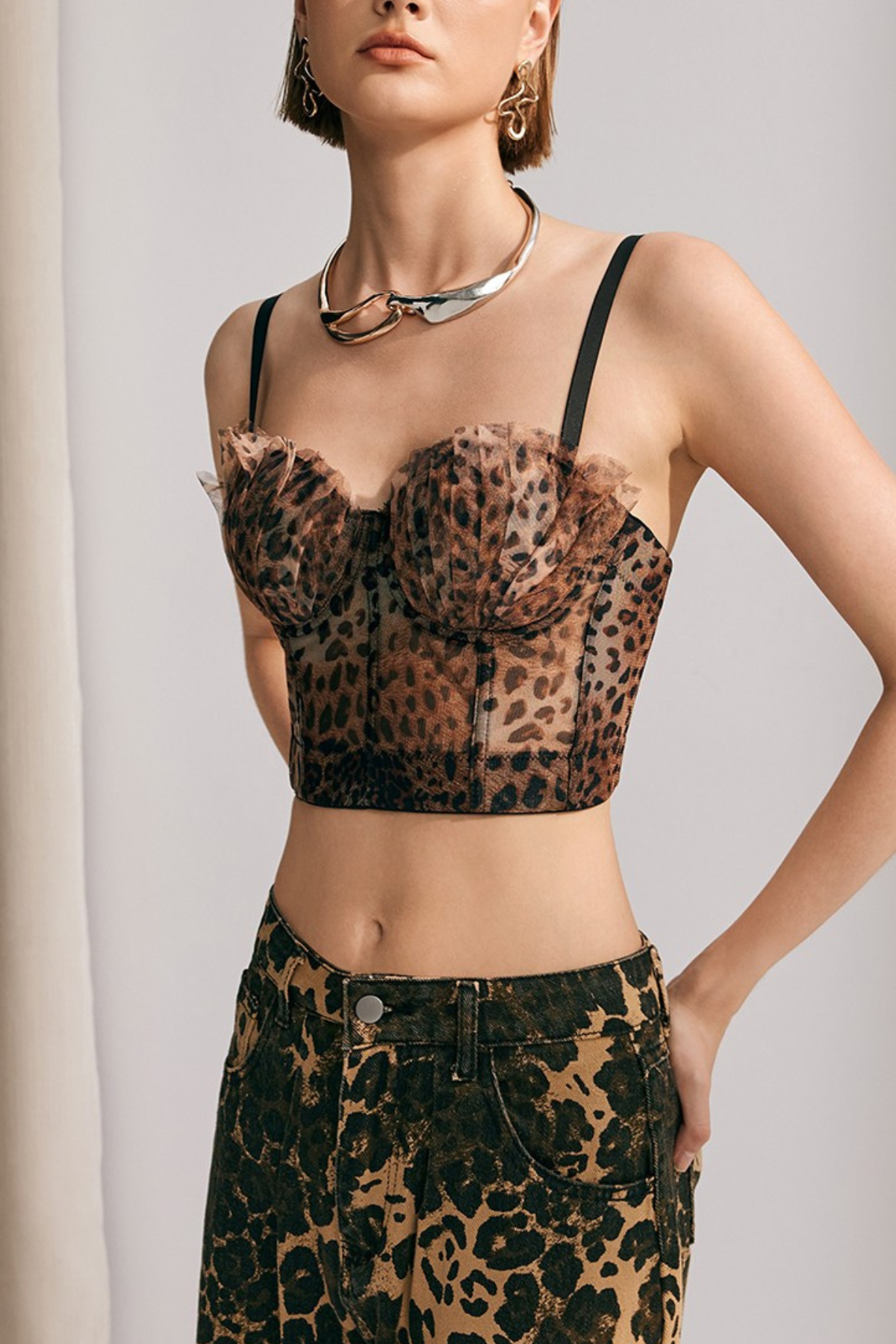 This Baldwin Corset Spaghetti Leopard Top is both stylish and flattering. Made with high-quality materials. it features a structured corset design and delicate spaghetti straps with a bold leopard print. The perfect addition to any wardrobe for a fierce and fashionable look.