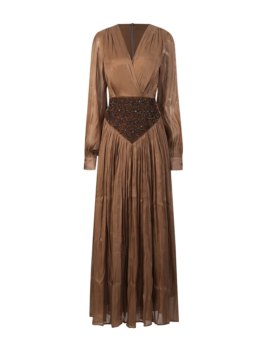 The Daedalus Embroidered Ruch Maxi Dress combines refined tailoring with intricate detailing. Delicate embroidery adorns the bodice. while strategic ruching creates a flattering silhouette that moves gracefully with you. The maxi length offers timeless elegance suitable for evening events. special occasions. or elevated everyday wear. Crafted with attention to construction quality. this piece delivers both visual interest and wearable sophistication for the discerning dresser.