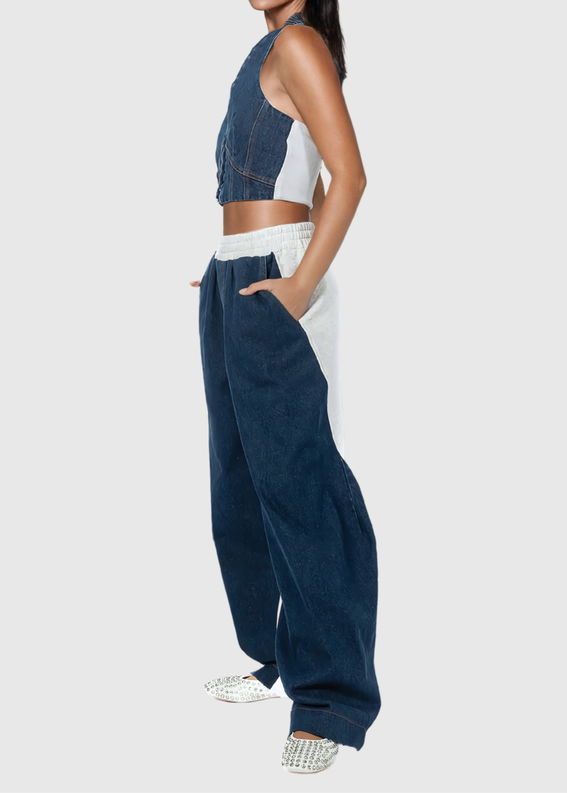 Maura Halter Neck Deconstruct Denim Pants Set